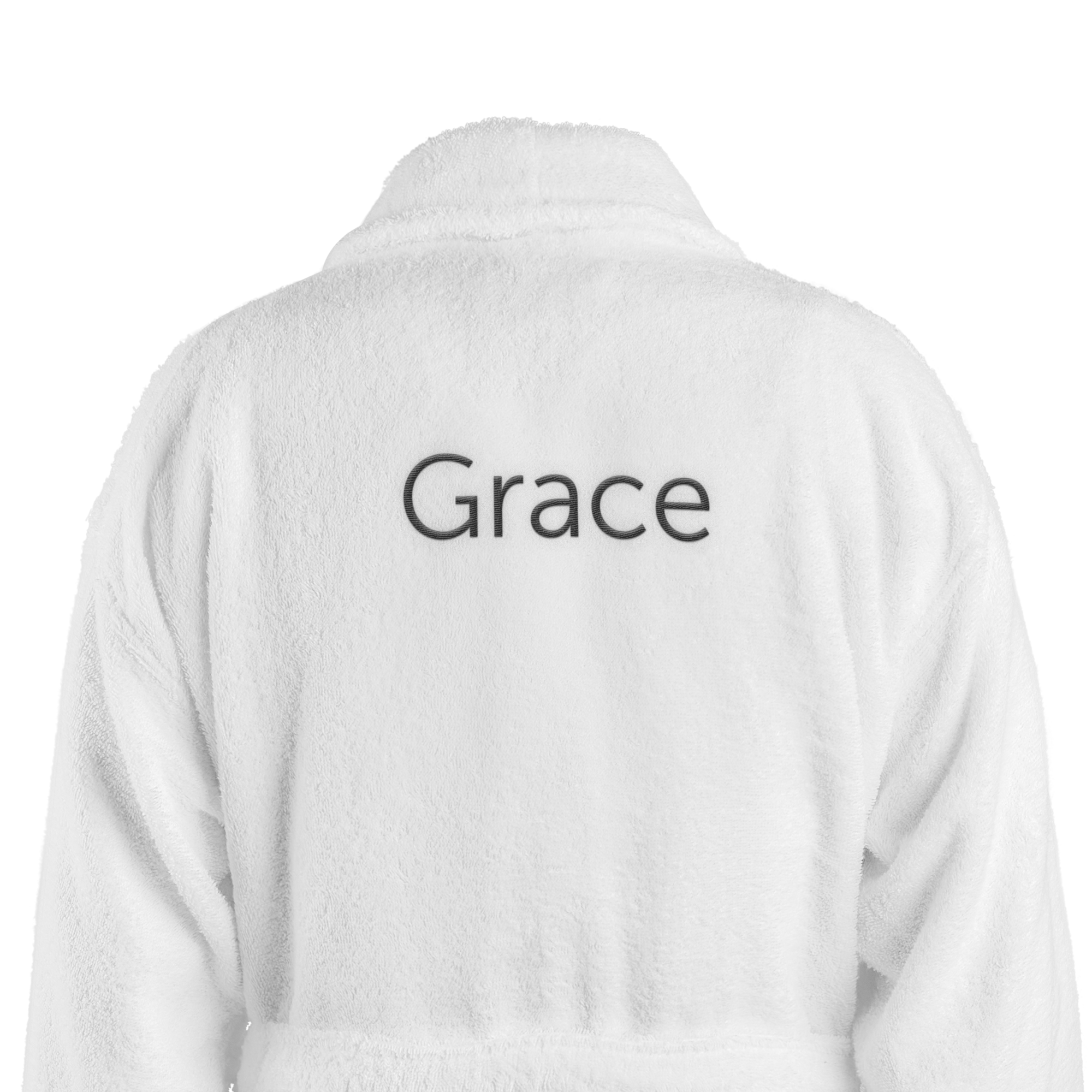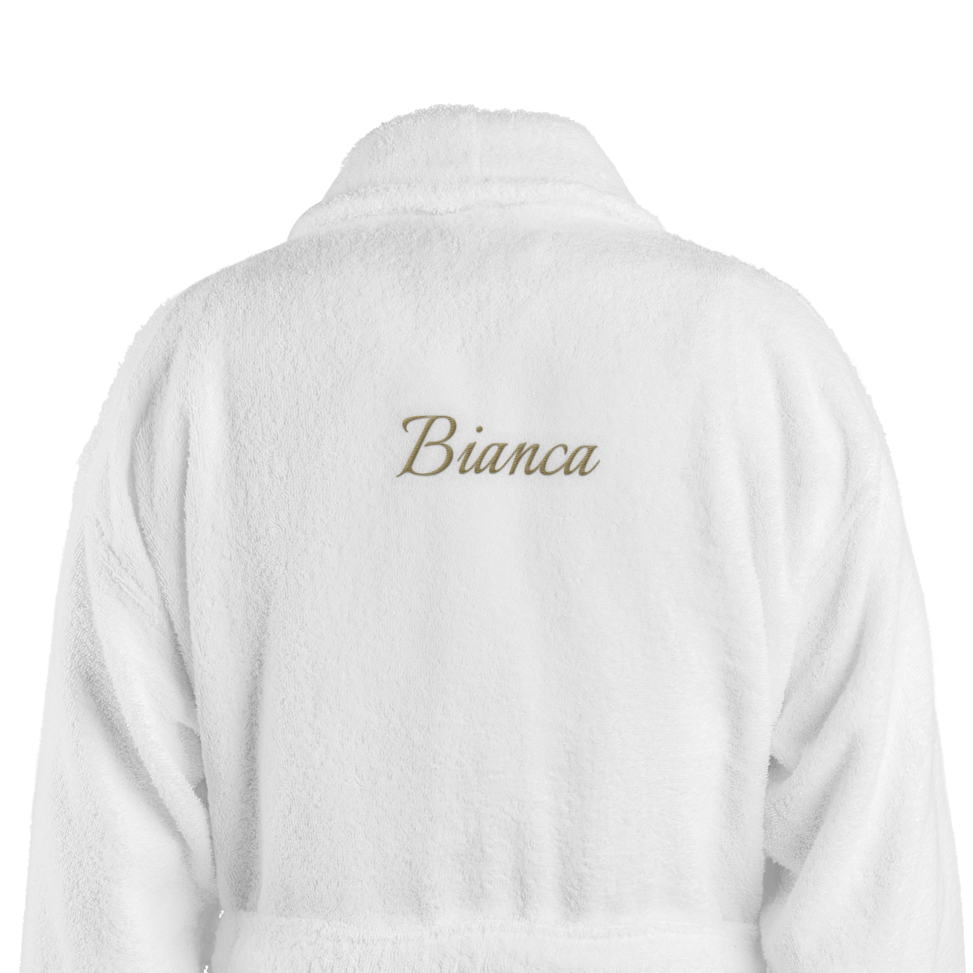 Um roupão muito macio e original, bordado com seu próprio texto ou nome! Um roupão clássico para mulheres, feito de 100% algodão felpudo.
