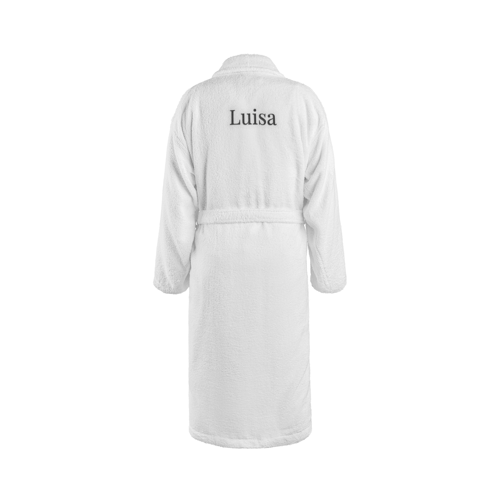 Um roupão muito macio e original, bordado com seu próprio texto ou nome! Um roupão clássico para mulheres, feito de 100% algodão felpudo.