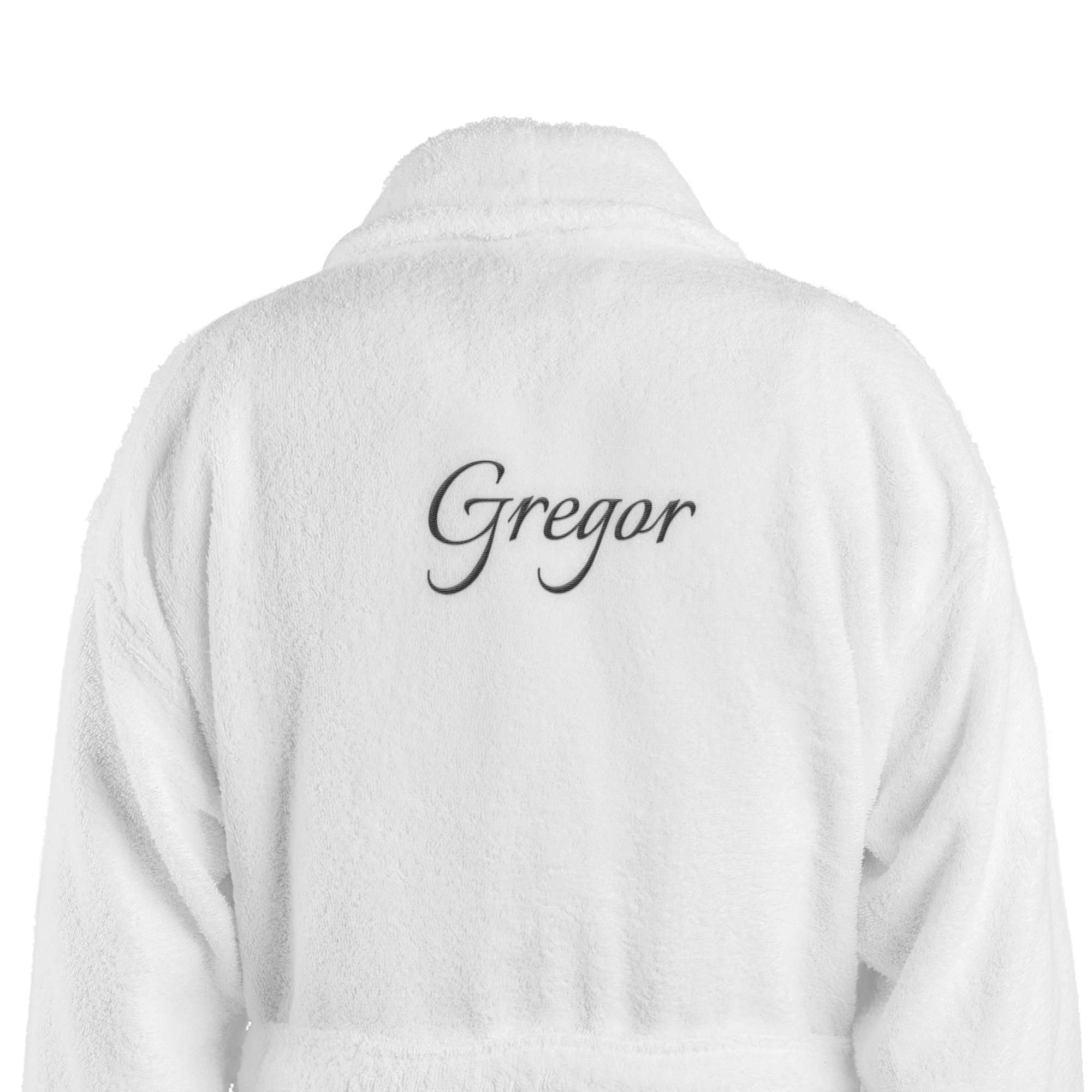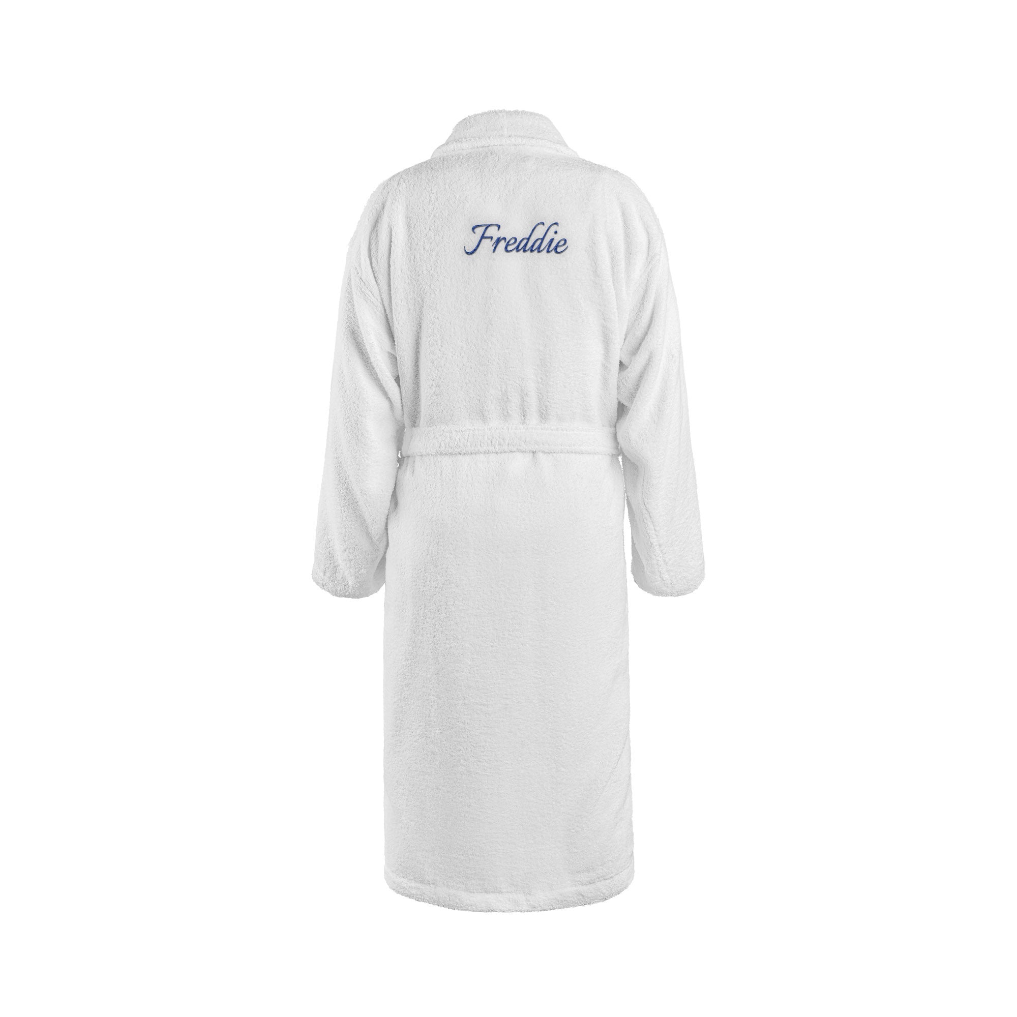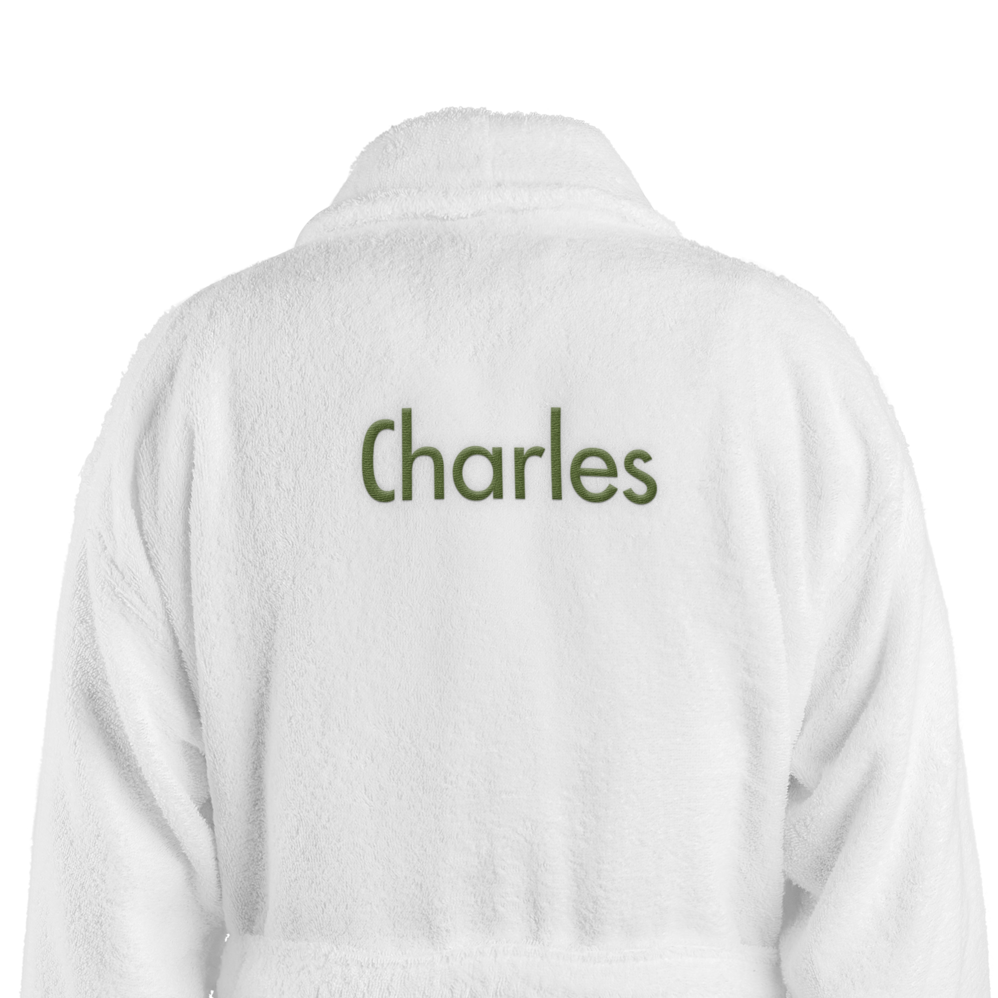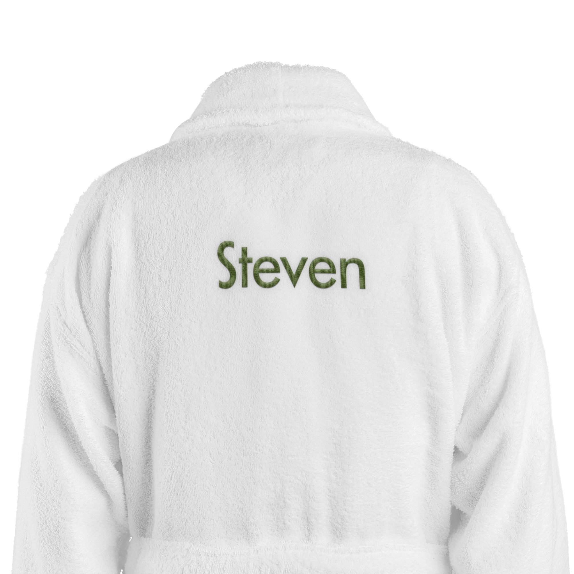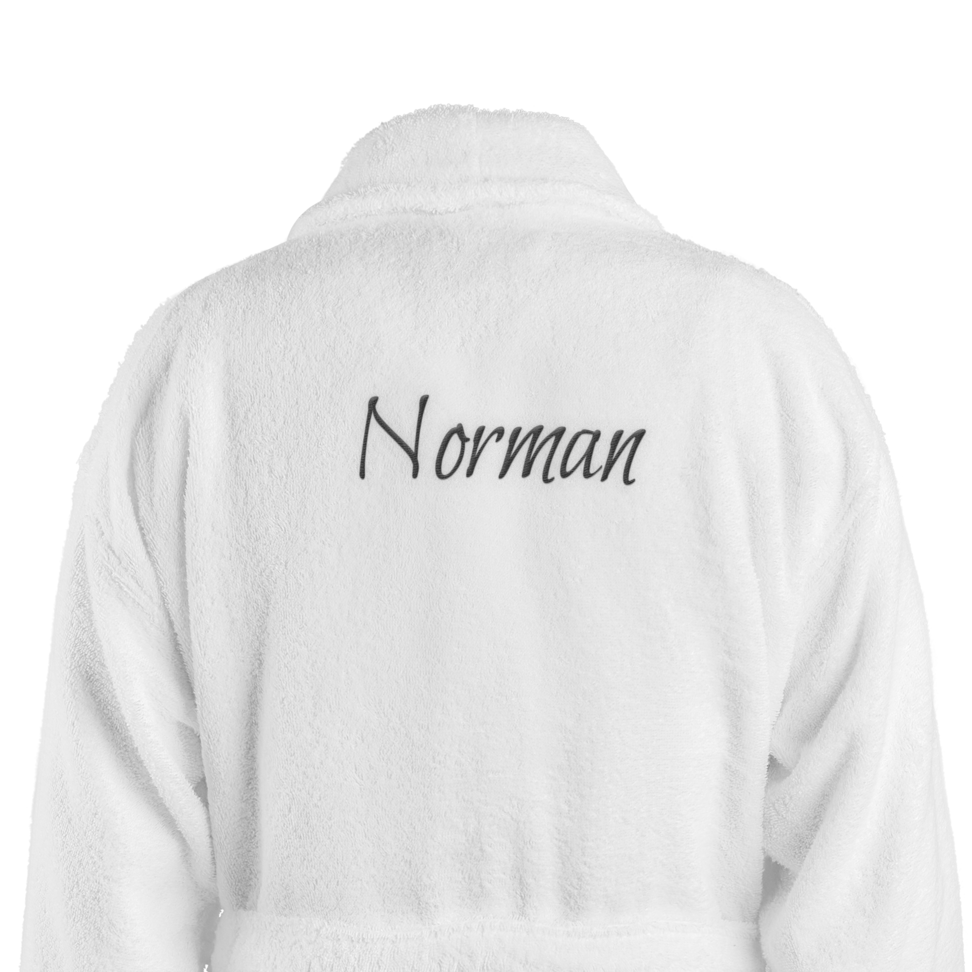 Um roupão muito macio e original, bordado com seu próprio texto ou nome! Um roupão clássico para homens, feito de 100% algodão felpudo.