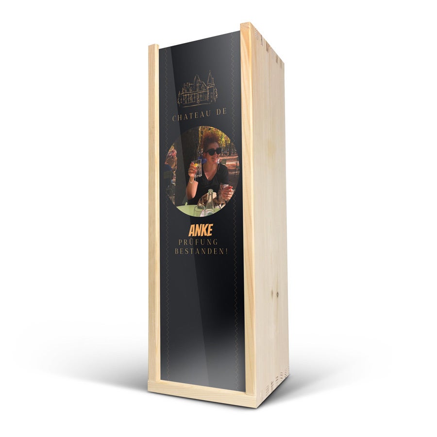 Uma deliciosa garrafa de verdadeiro champanhe Moët & Chandon em uma caixa de madeira gravada com seu nome ou texto. Vários tamanhos de garrafa disponíveis!