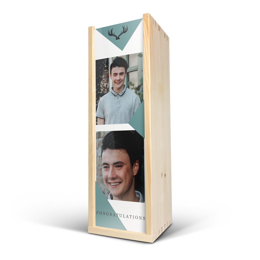 Sobre este conjunto de champanhe e caixa de madeira personalizada: