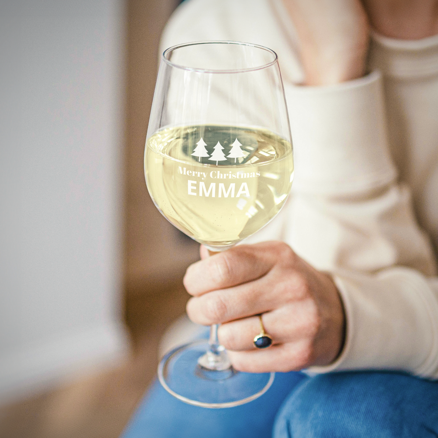 Linda taça de vinho gravada com seu próprio texto ou nome.