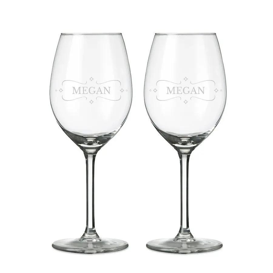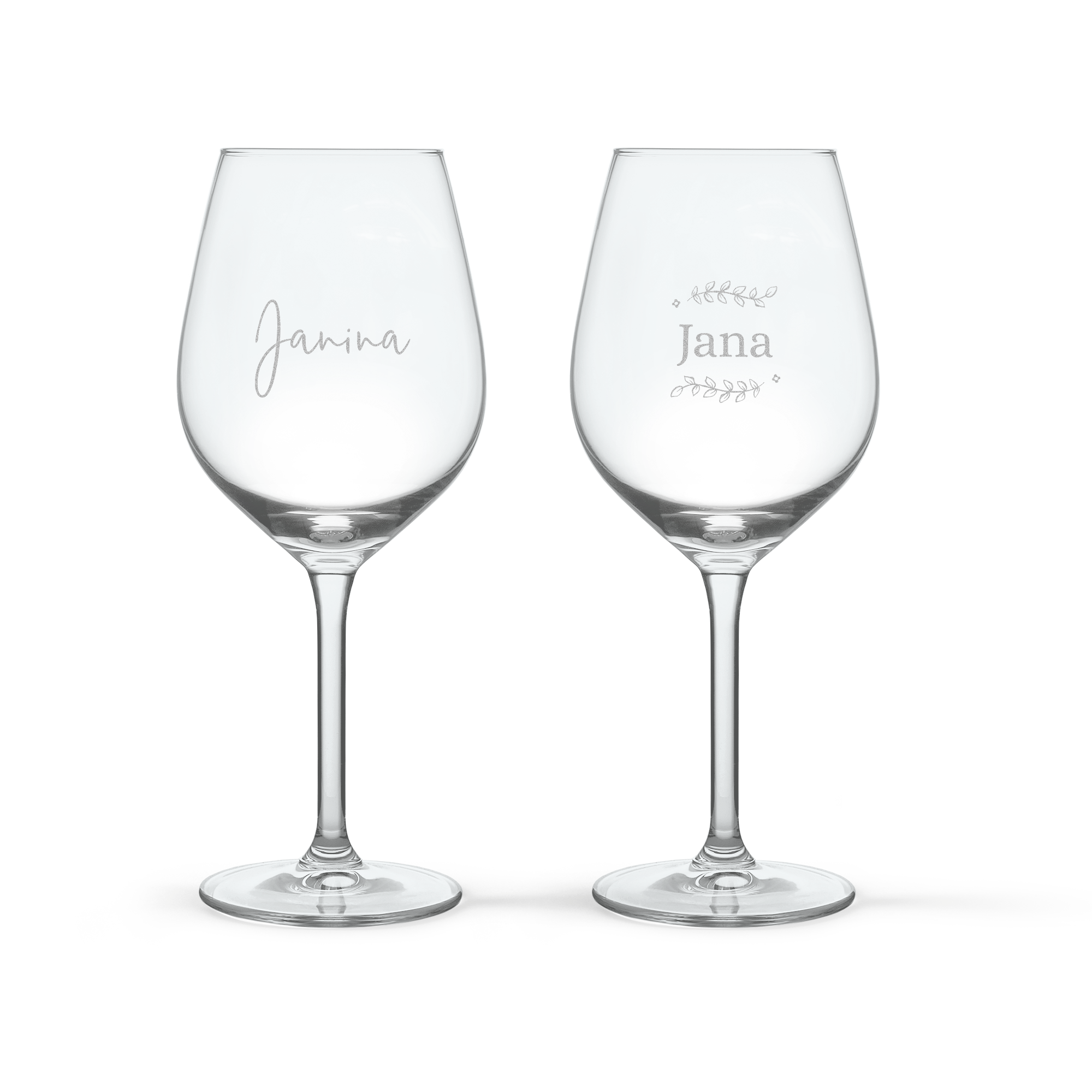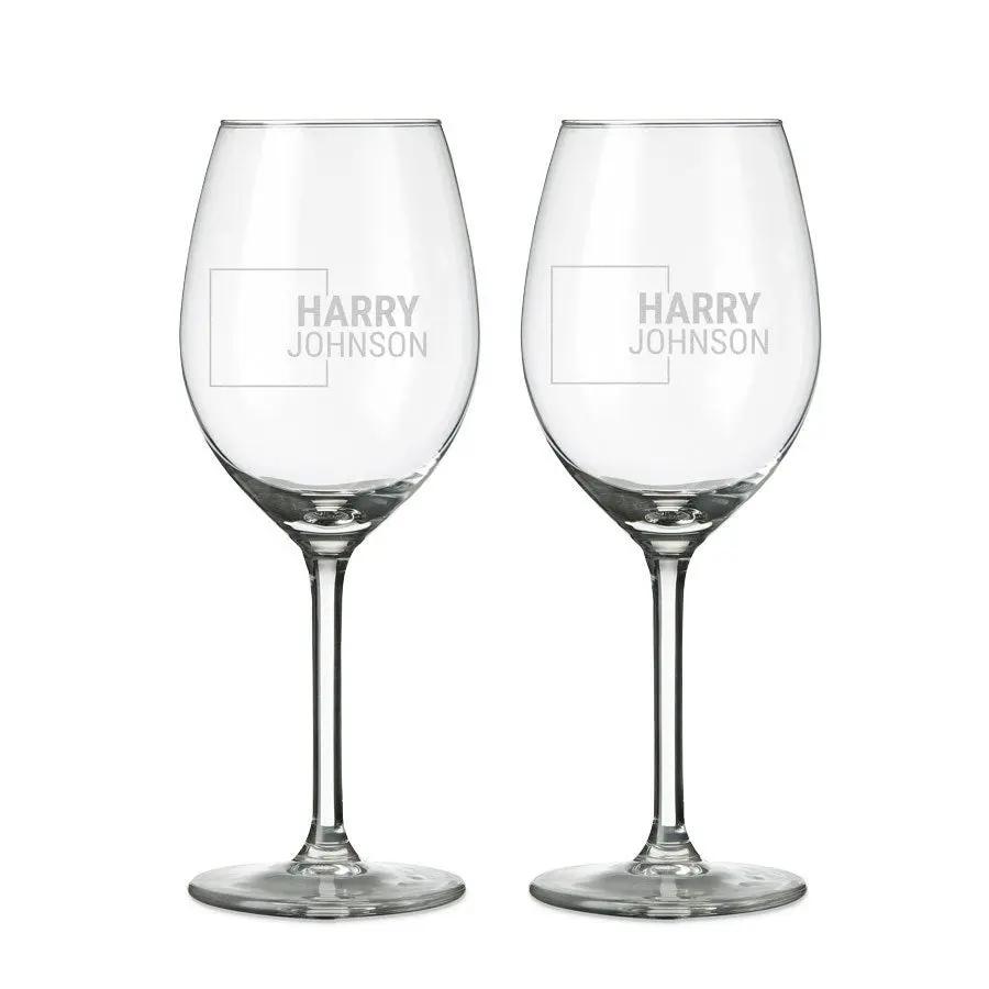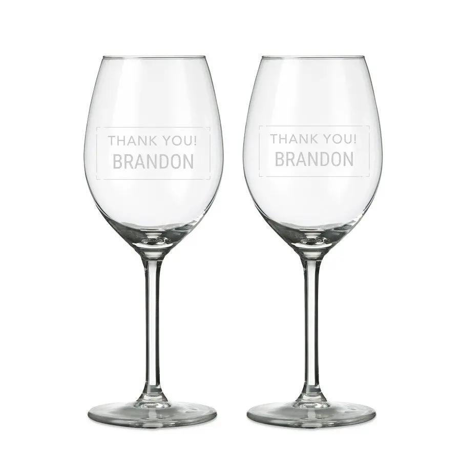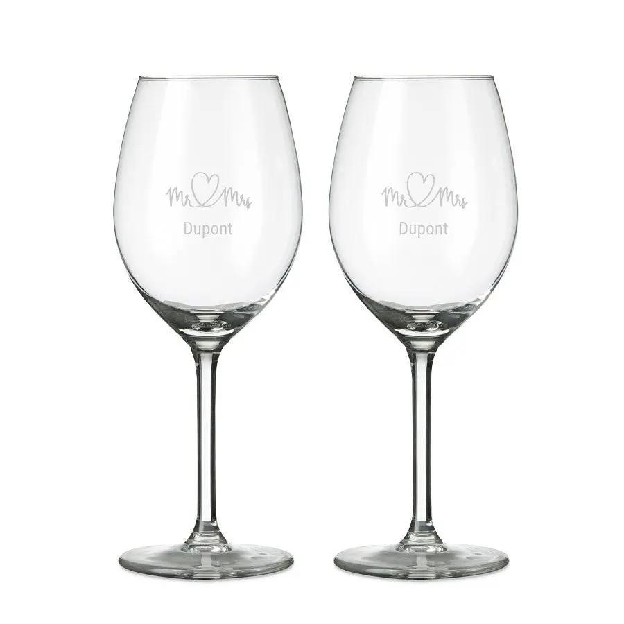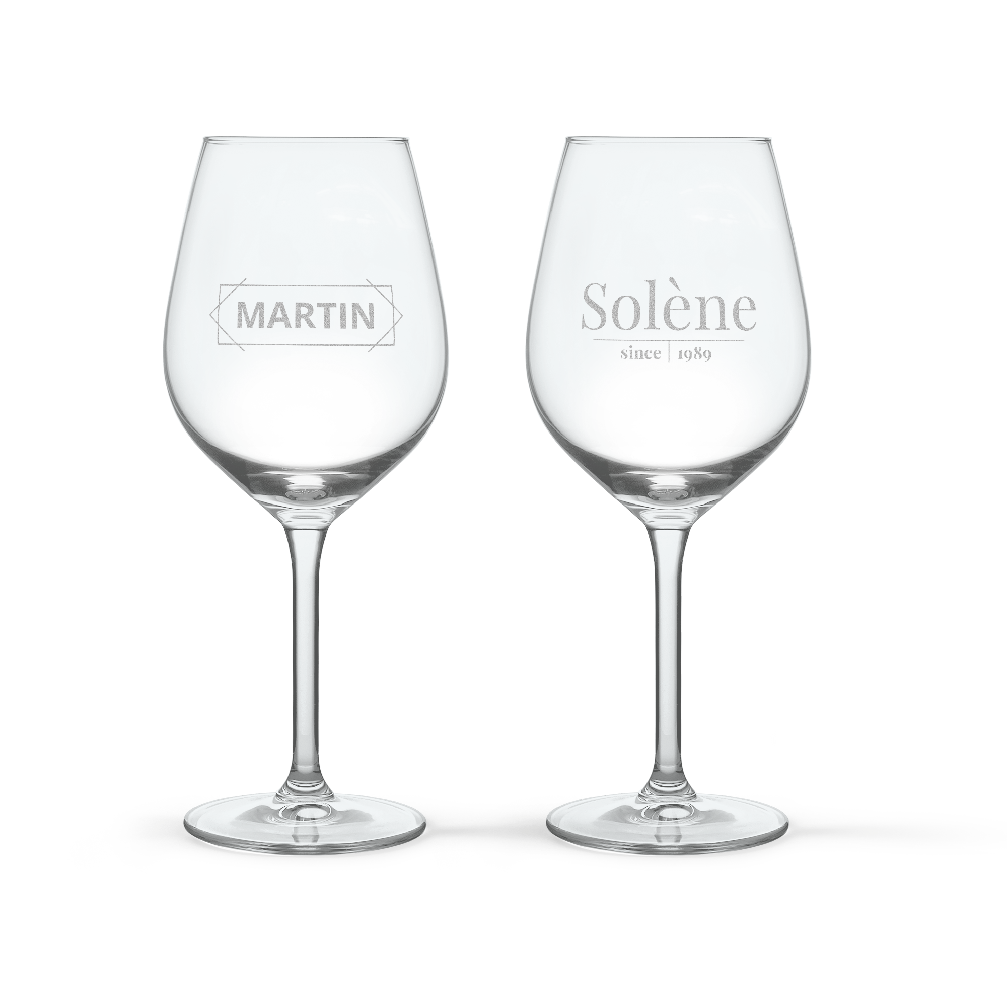2 Taças de vinho lindas gravadas com seu próprio texto ou nome.