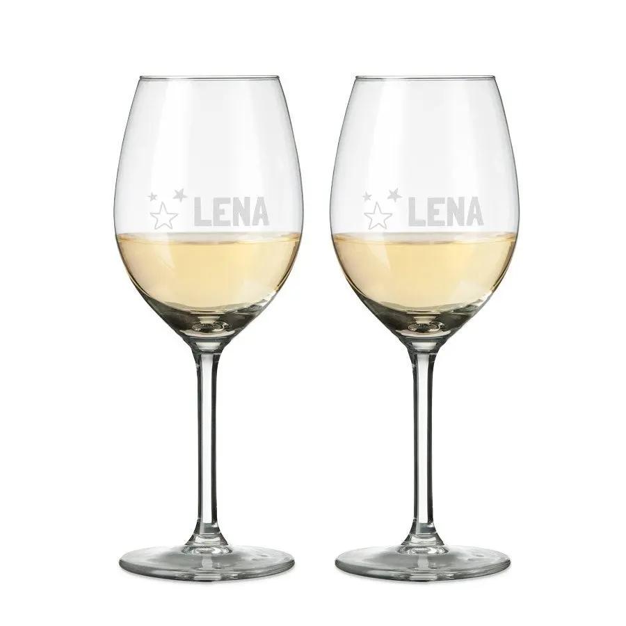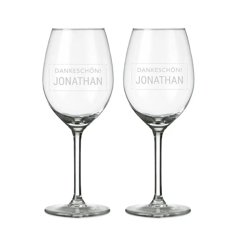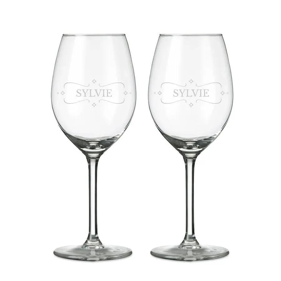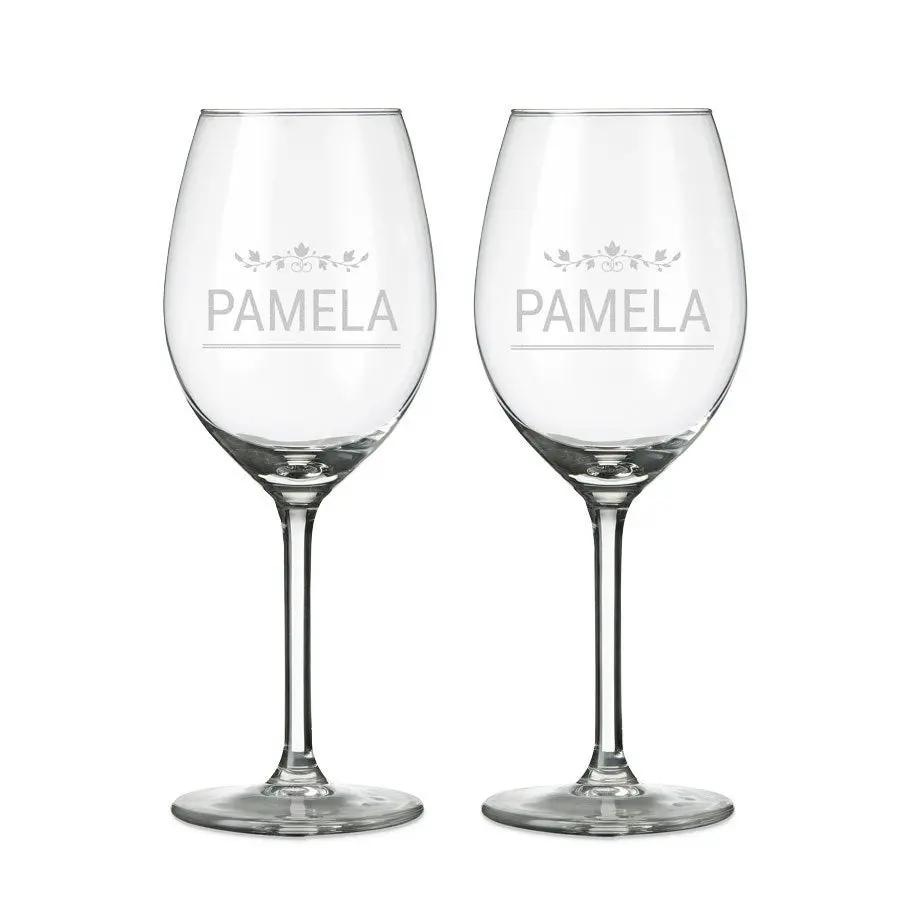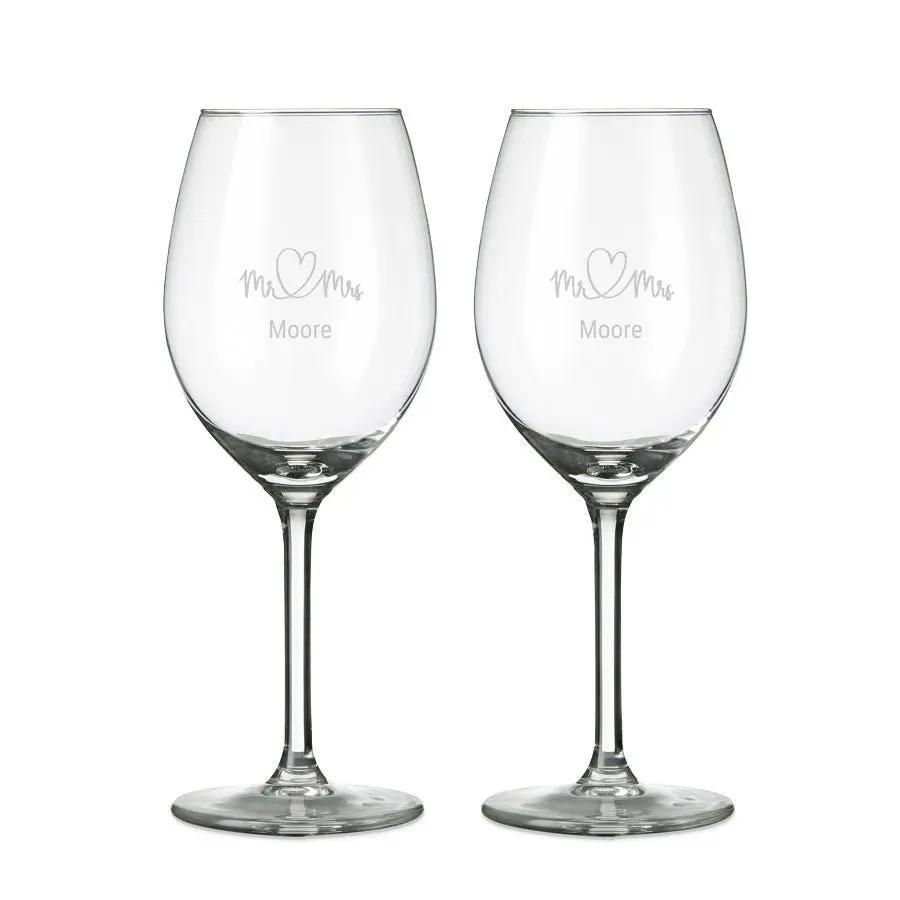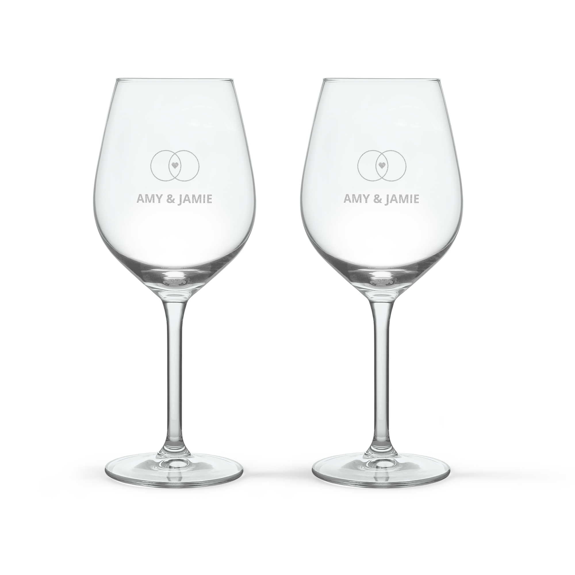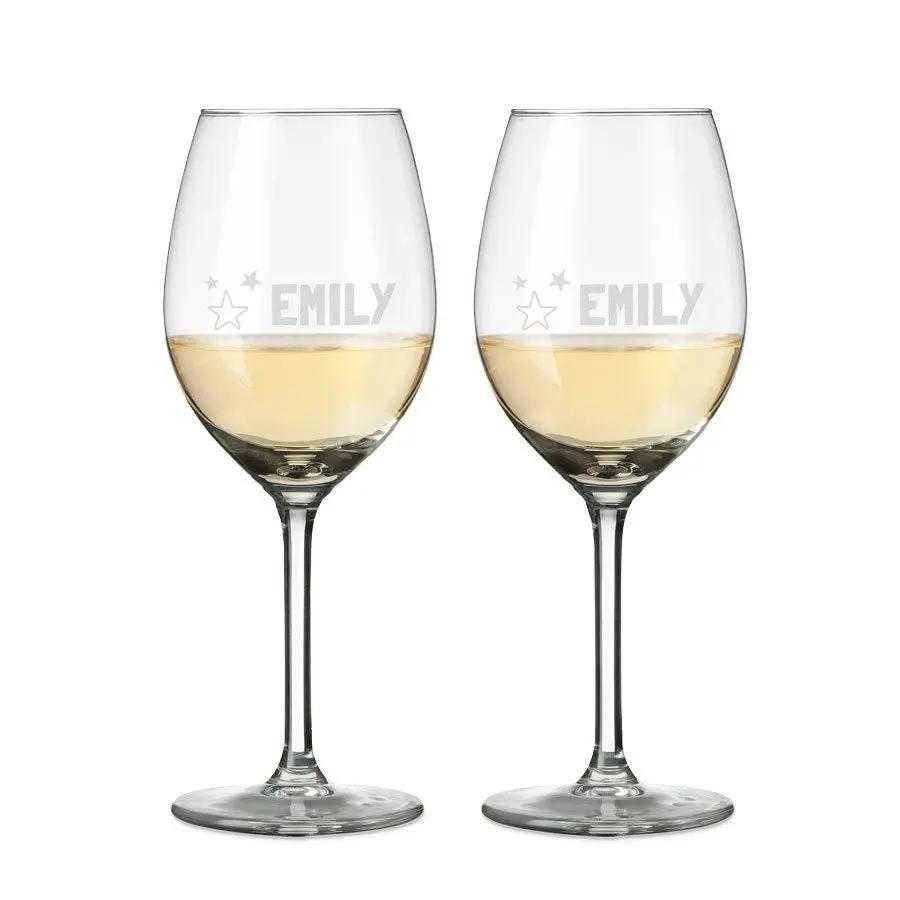 2 Taças de vinho lindas gravadas com seu próprio texto ou nome.