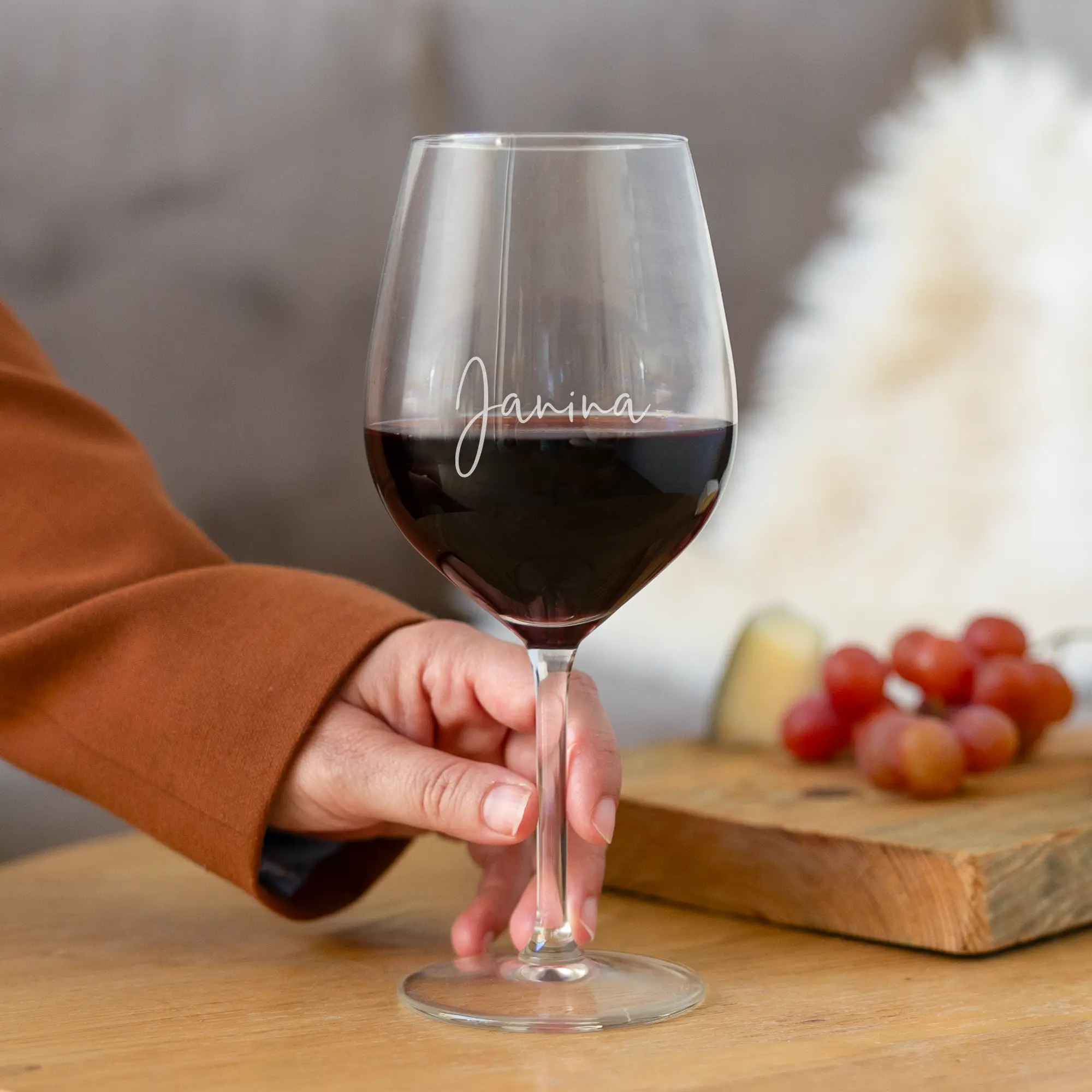 Copos de vinho lindos gravados com seu próprio texto ou nome.