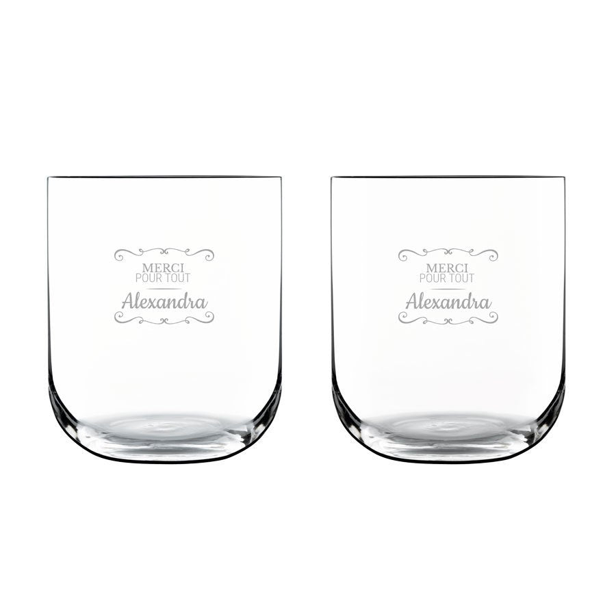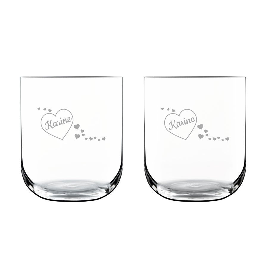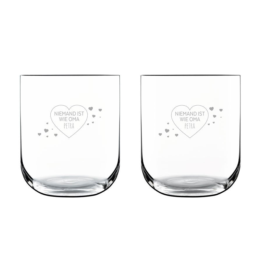 Quer gravar um copo d'água de luxo único? Crie um copo d'água personalizado e faça a gravação com um nome ou texto. Um presente verdadeiramente original!