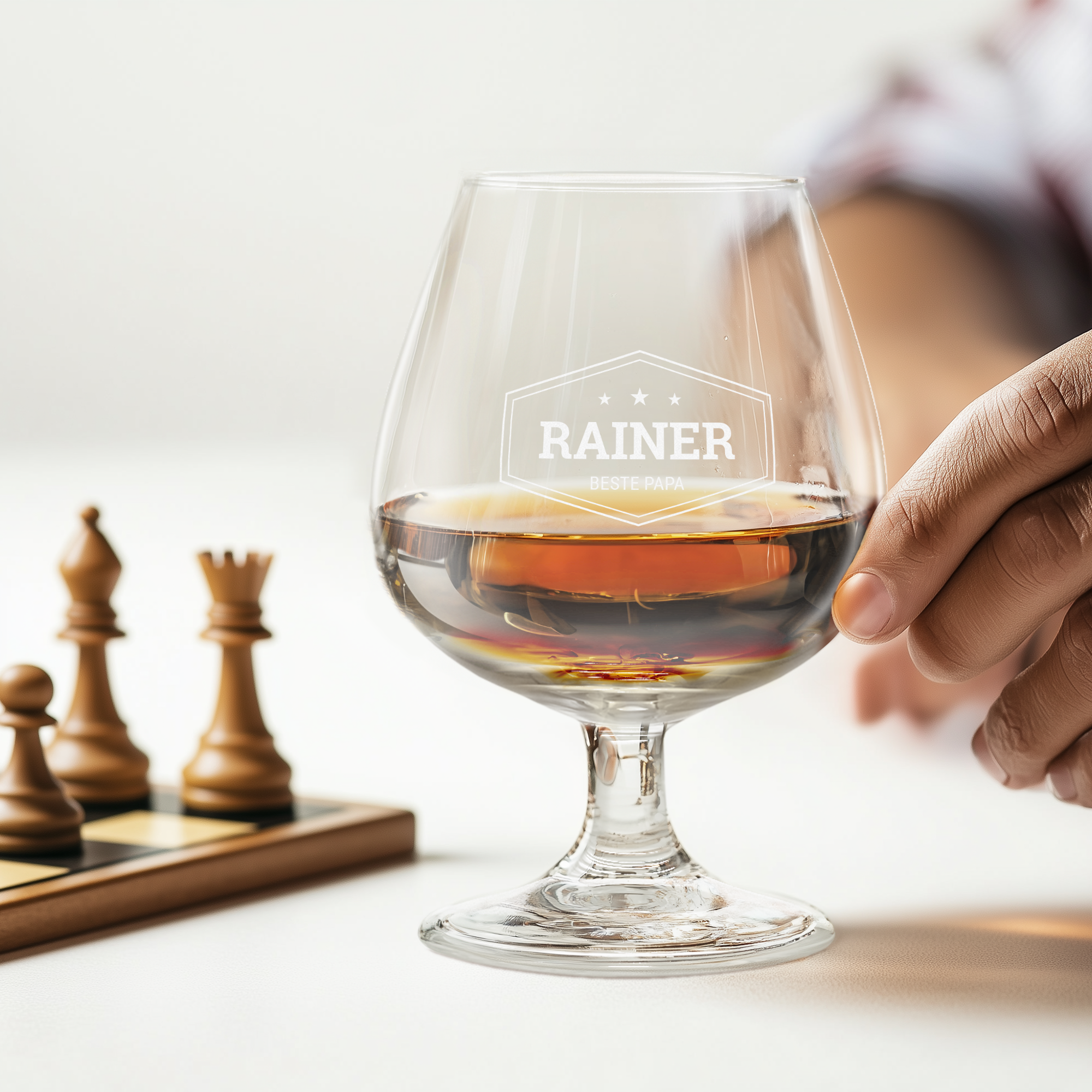 Tenha um copo de conhaque gravado com um nome ou texto. Um presente único e pessoal para qualquer amante de conhaque, saúde!