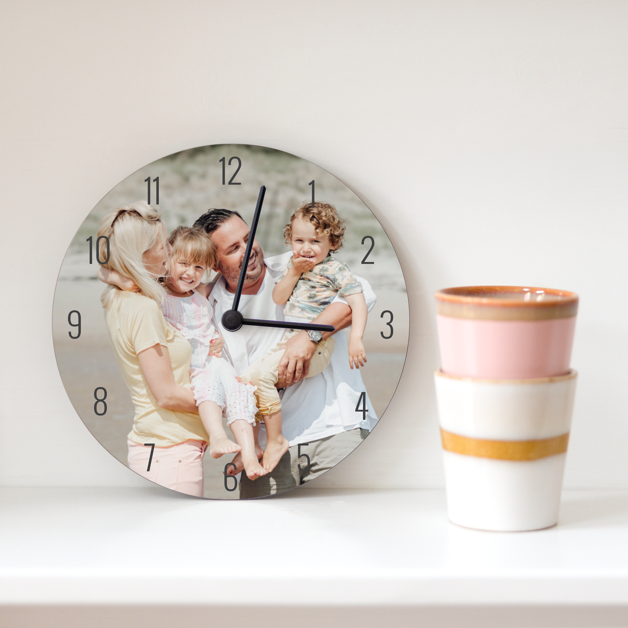 Um pequeno relógio de MDF com a sua própria foto e texto! Diâmetro de 20,5 cm / 8,1".
