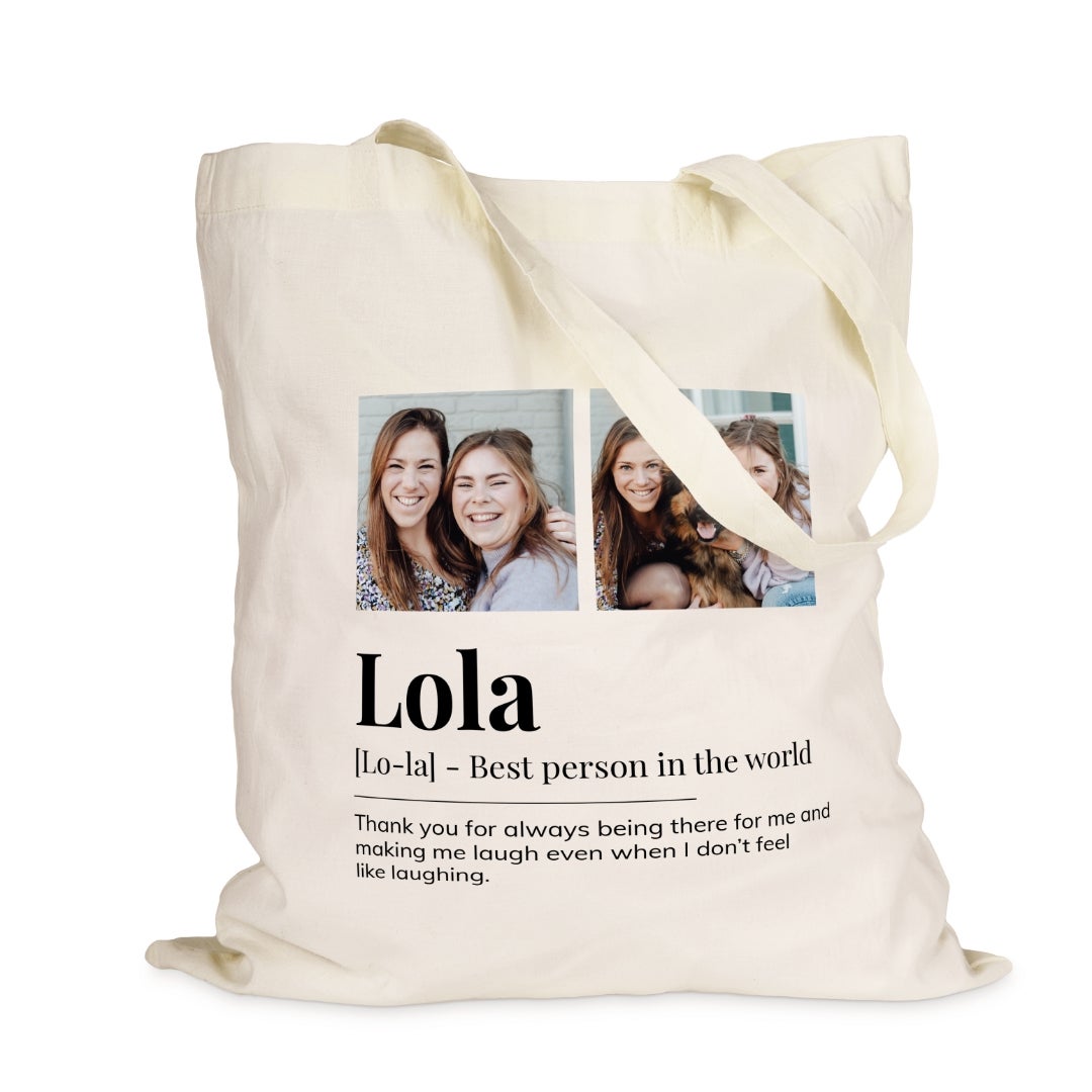 A melhor bolsa tote personalizada com nome e foto. 100% algodão, seu design impresso em um ou ambos os lados. Verdadeiramente única!