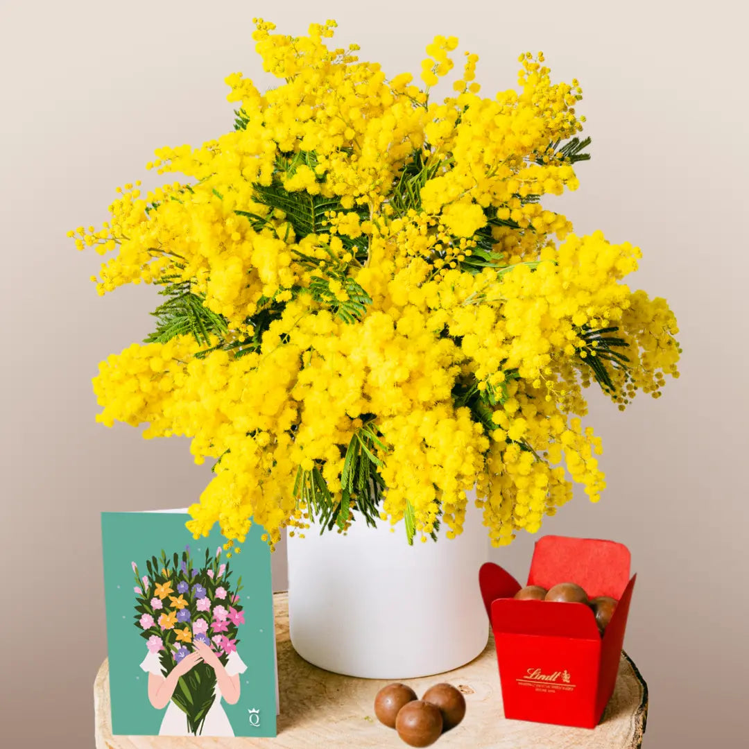 Presenteie alguém especial com este maravilhoso buquê de mimosas, um presente perfeito para o Dia Internacional da Mulher.