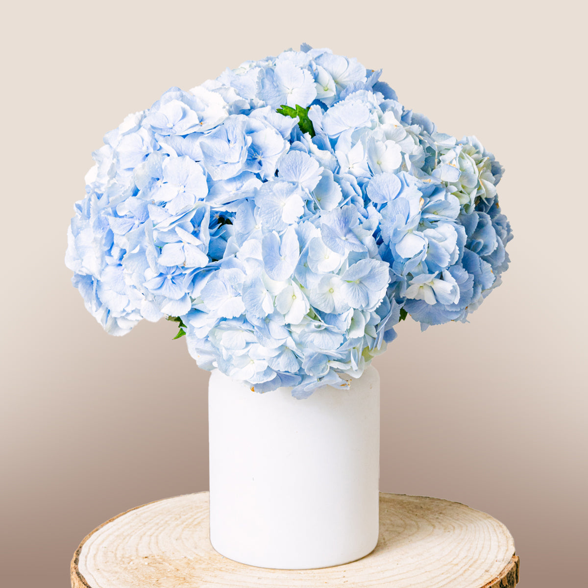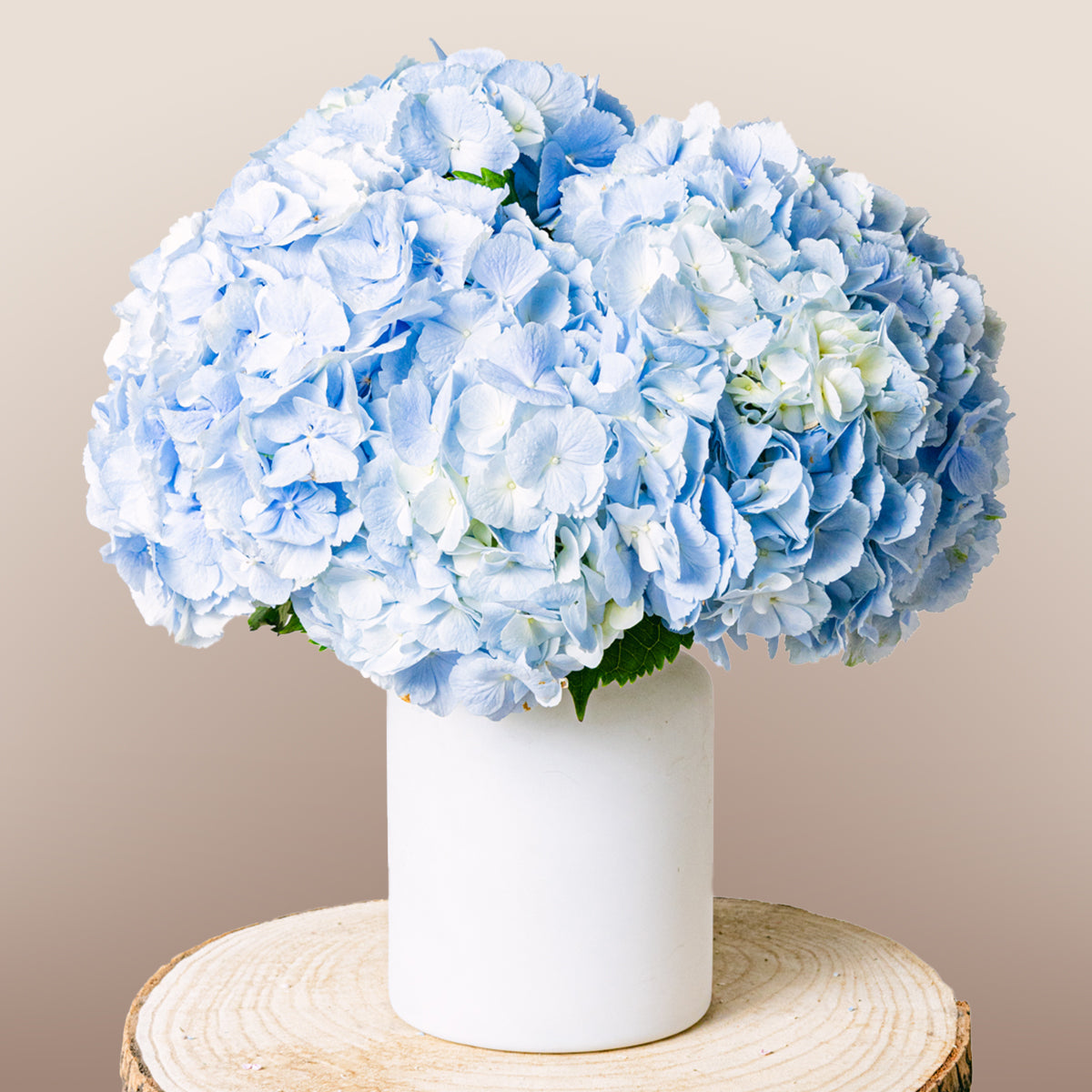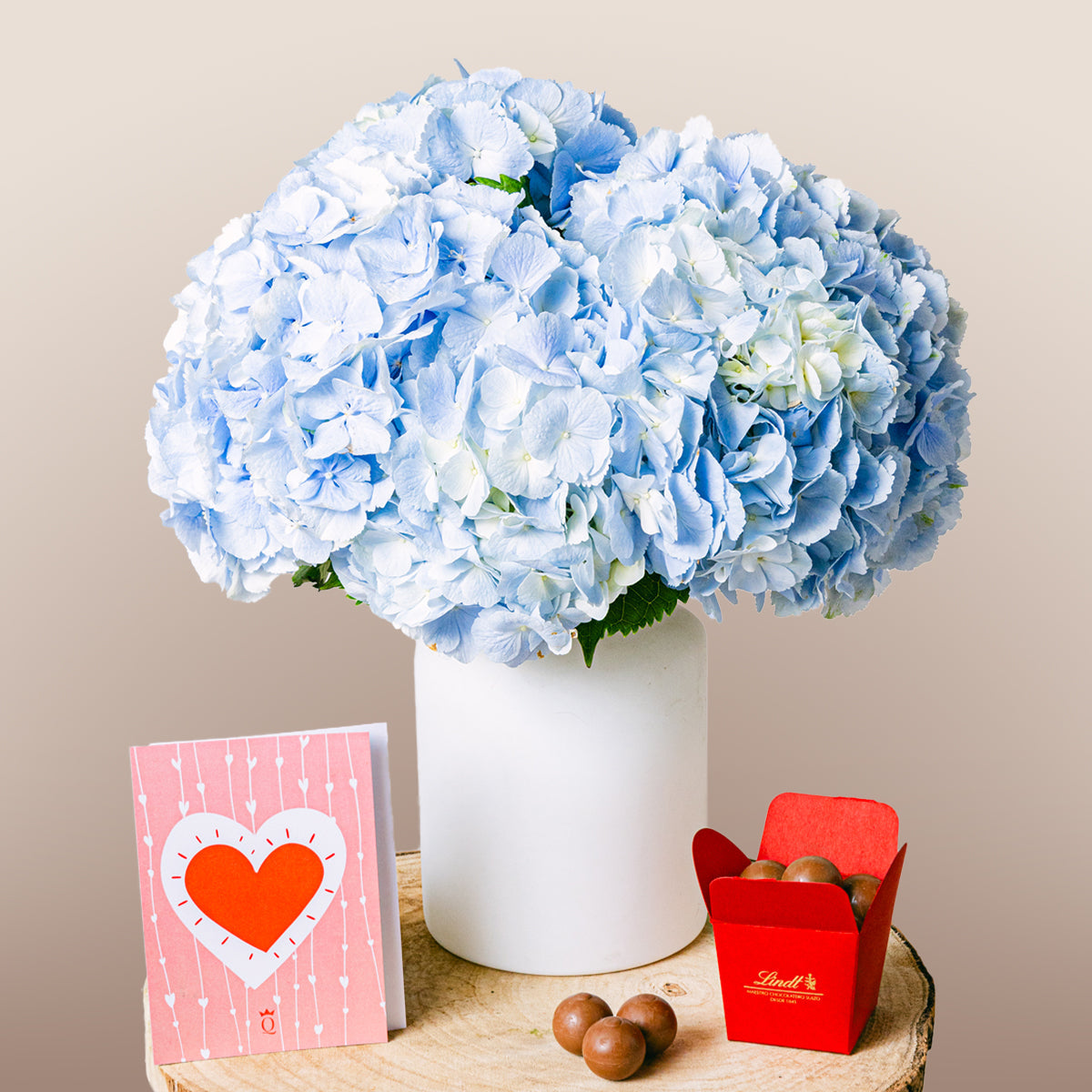 A hortênsia azul simboliza gratidão, arrependimento e abundância. Este buquê transmite sentimentos profundos e duradouros, perfeito para expressar emoções sinceras.