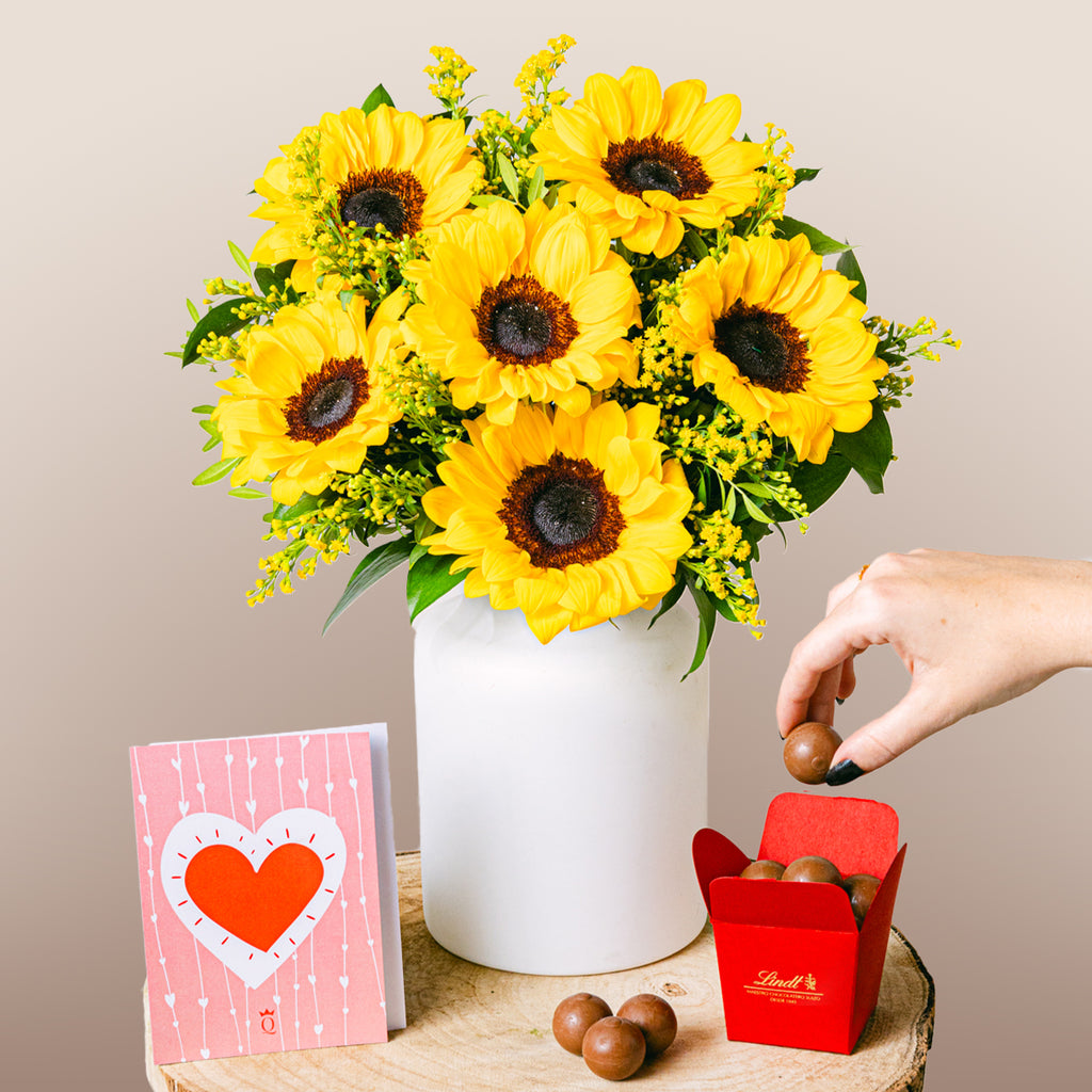 Os girassóis simbolizam calor, admiração e longevidade. Sua presença evoca sentimentos de alegria e positividade, tornando este buquê um presente perfeito para celebrar momentos especiais.