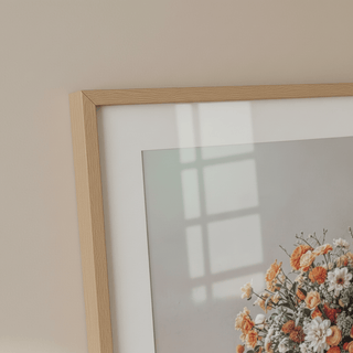 Um buquê suave em tons neutros, segurado com graça, evocando gratidão e carinho. Uma calorosa expressão de apreço.